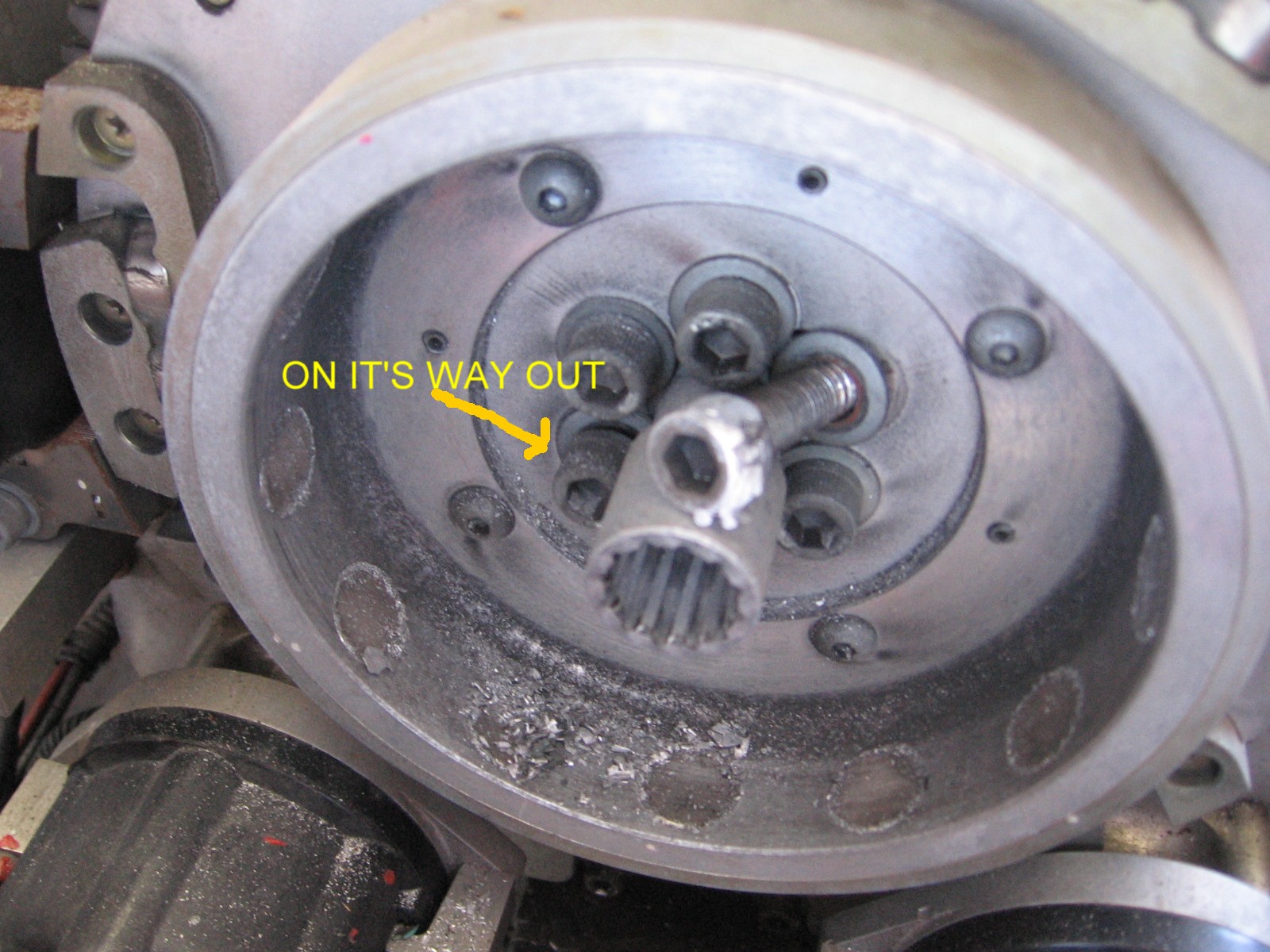 From the photo I cannot tell if the bolts have sheared but this is likely as they will shear at the crankshaft flange which is 1" in from the head.