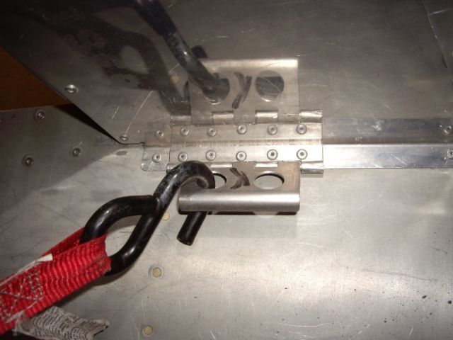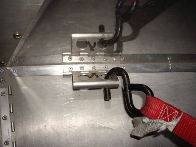 Here are some picture of tiedowns I made out of hinge material. We're getting ready to make these available for sale--they should be on the website in a few days. Price will be $49 for a set of 4. I've had 72# strapped down for all my phase one so far and they're working great. The return on the movable side is to keep it up above carpet level.