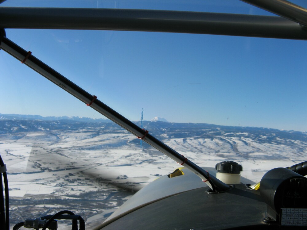 Here's a couple pictures winter kitfox flying in Central Washington. For those new to Kitfoxes, the blue line on the windshield is to line up on the centerline when landing, I'm a new kitfox pilot. The hole in the cowl is my windshield defroster, an advantage of the 503 Rotax