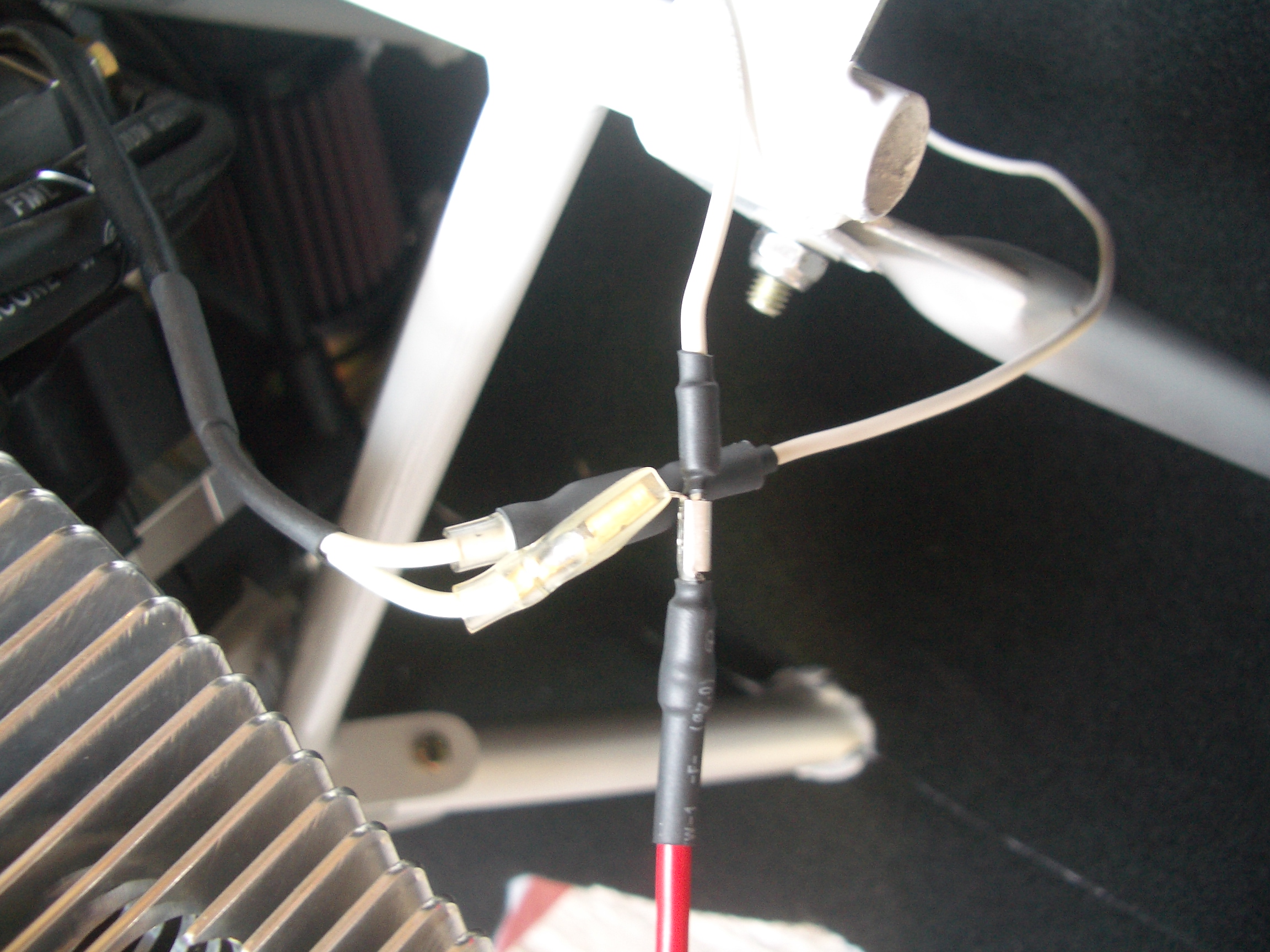 I've just fabricated the link from one of my Jab dynamo leads, connecting this to pin 1 of the regulater and to a 3A in-line fuse, which will eventually go the tach of my EIS. I've posted a picture of how I've linked the 3 wires together and wanted your opinion on whether it's safe or is there a better way to do this? In the picture the white wires on the left are from the dynamo, the white(?) on the right go to the voltage regulater and the red wire at the bottom is the 3A in-line fuse. Am I ok with the piggy-back connector that I've used?