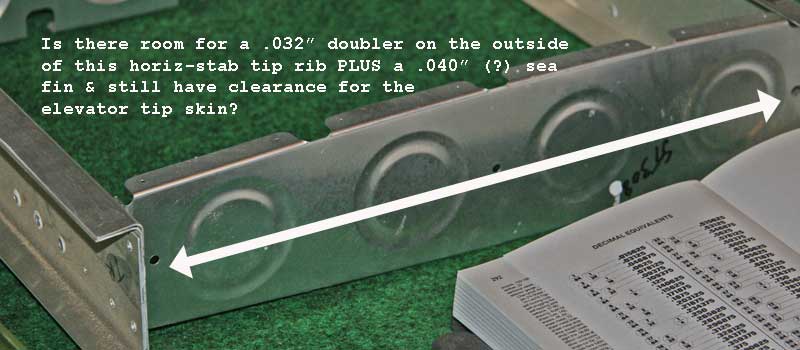 My first question is in the below picture. I'm concerned if I put a .032 doubler and then later install the actual sea fin (out of .040 ?) whether I'll have enough clearance for elevator travel.