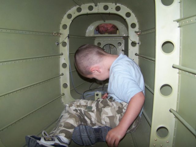 Mine (7) recently helped me pick a bolt out from between the skin and inner panel below the door sill. This picture is a couple years old. He was going behind me putting tape tabs on the rivets as I filled the holes.