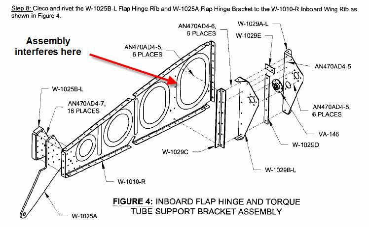 Has anyone run into the problem of the rear aileron torque tube support brackets interfering with the bead in the forward most lightening hole of the wing root ribs?
