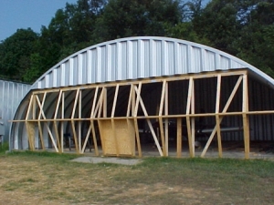 Went out today and finished the screwing and bolting.  Knock the chocks out from under the door and it swung like on ball bearings.  My spacing under the lower board and concrete floor ranged between 1 1/4" to 2" due to variation in the level of the concrete floor - so I am extremely pleased indeed.