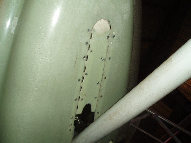 I took a piece of fiberglass I had trimmed off the0 door window and made a replacement piece for the lower cowl cut out. The0 trimmed piece had a slight curve to it so I designed the cover to slide up under0 the front of the cowl. After I installed the piano hinges on both sides I0 then installed fiberglass over the part that slide under the cowl to bring the0 finished piece out level with the front end. I can remove one piano hinge0 safety screw, slide out the piano hinge pin on one side and flip the cover back0 up inside and then remove the lower cowl. Works like a dream and you can0 make the cut out as far forward as you desire. Also no drag created0 because the mod lays flush with the bottom of the cowl.