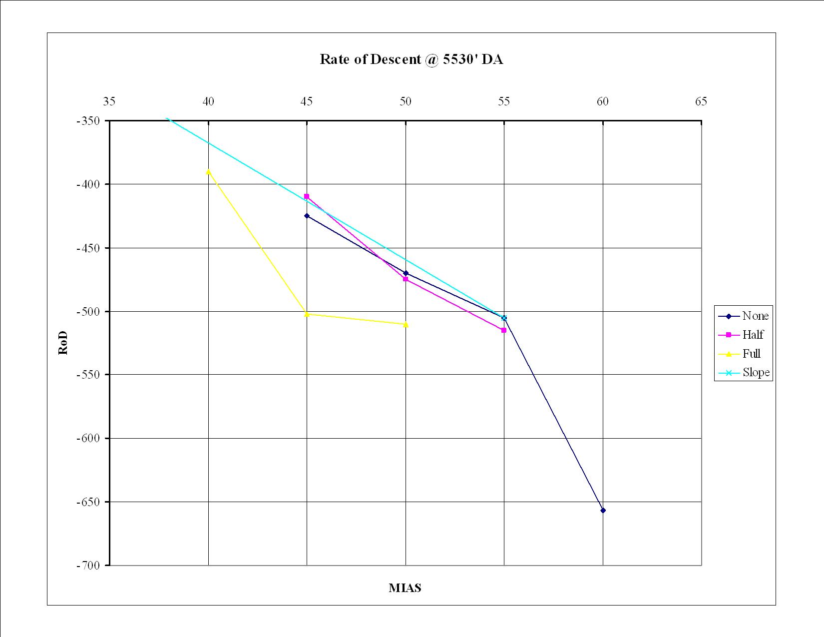 Interestingly the glide ratio is slightly better with half flaps at 45 MIAS