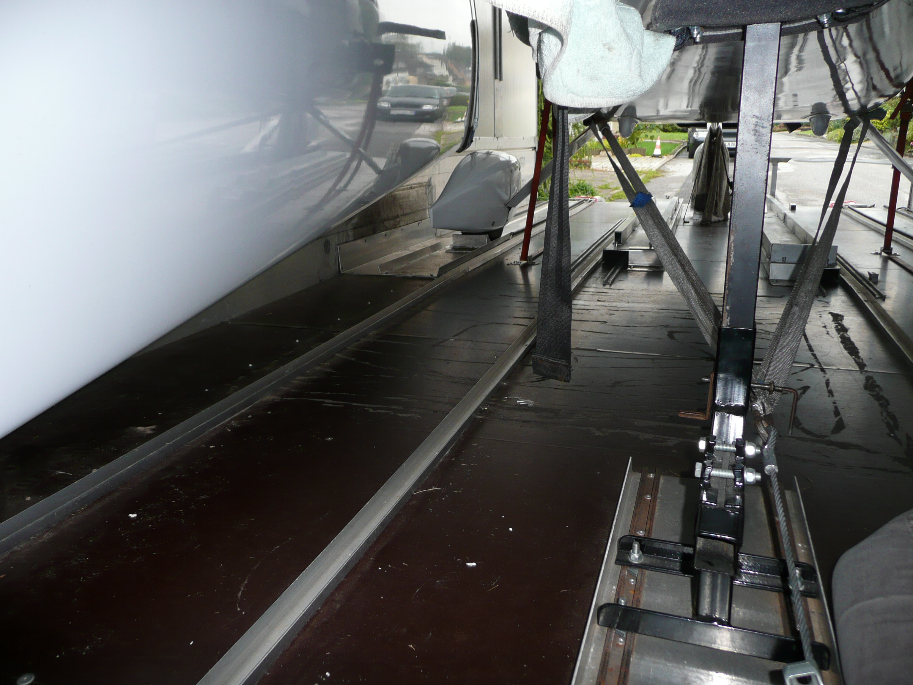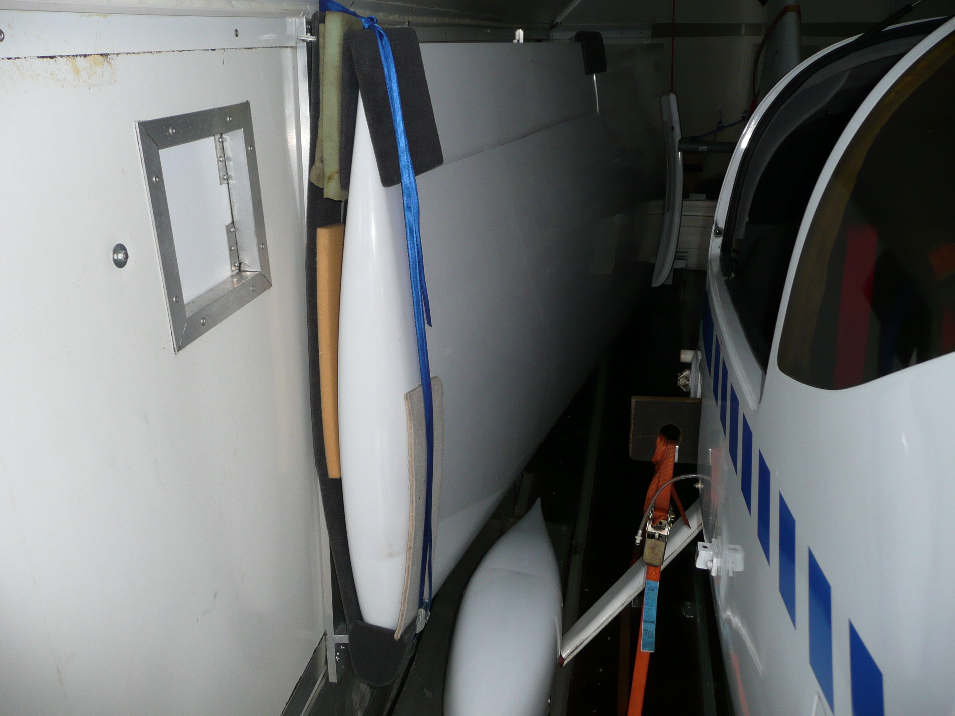 here come some more pictures from inside the trailer. However keep in mind, that you need to tilt the wings after sliding them out on their dollies. Thus I have another dolly on which I lay the wings and rotate them horizontally. Here you can see, how I do that