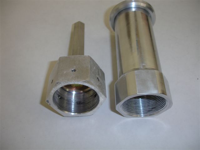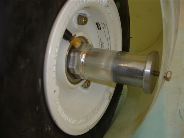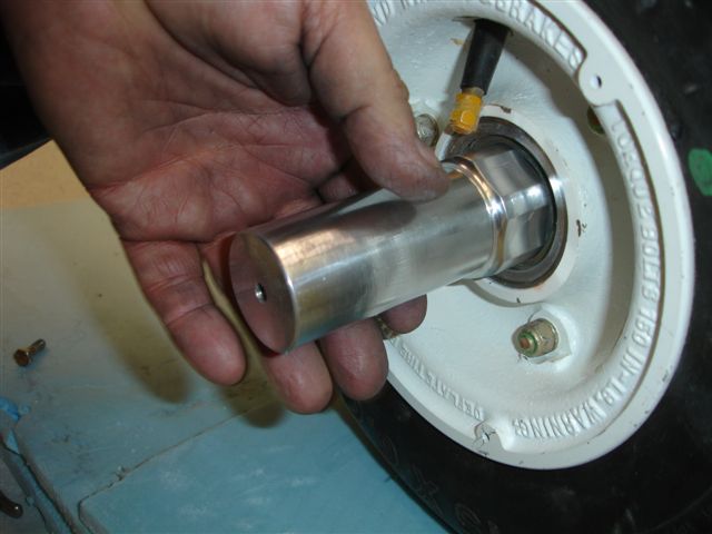 The pics below show his design. The axle extender rod is hollow in the center. This setup is lighter, thats right, lighter in weight than Van's nut and bolt on extender. It doesn't look like it in the pics, but it is! And it's stronger too!