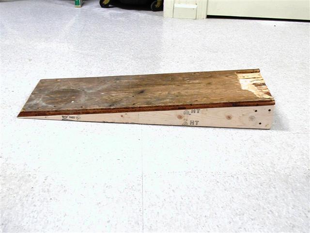 Ramp I made to lessen the angle on the ramp so one person can easily push the A/C into the wheel cradle.