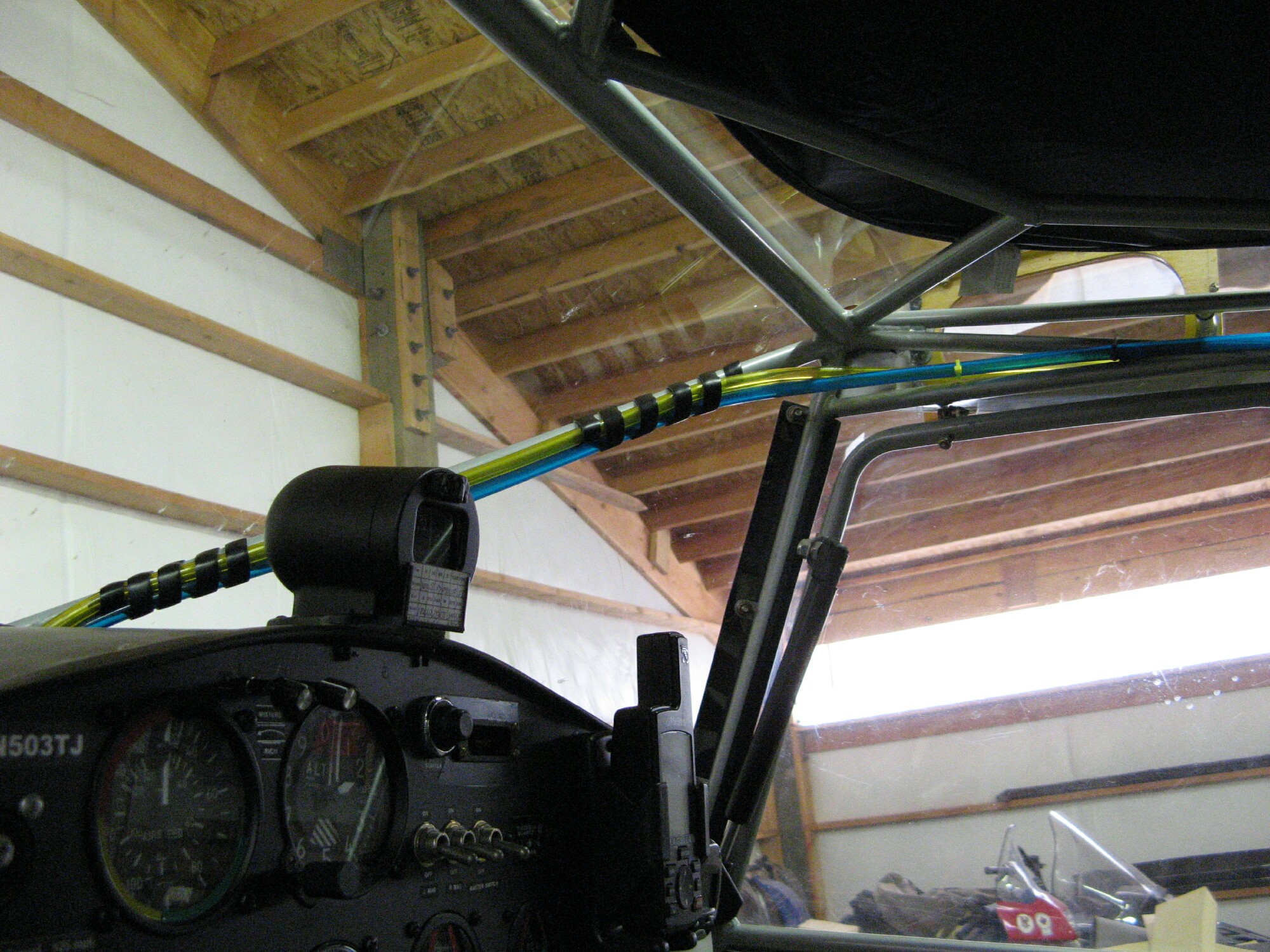 The kitfox fuel systems that I know of that worked well all ran the fuel line from the wing tank imediately down behind the seat, forward under the seat and door then back up to the panel tank. I have not gone with that route because I don't like the idea of that significant low spot in the line that could collect water and maybe even freeze.
