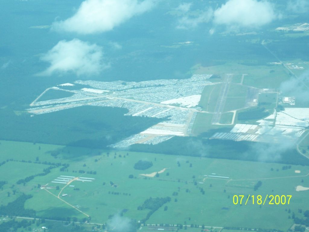 Hint: These are pictures of 13,000 furnished mobile homes parked at the Hope, Arkansas airport by FEMA for use in New Orleans whose zoning folks decided they would not met code. Roughly a half BILLION of your tax dollars at rest/work. (13,000 x 45,000) Pictures taken yesterday. They have been there since just after Rita so I'm thinking someday they will make great deer camps