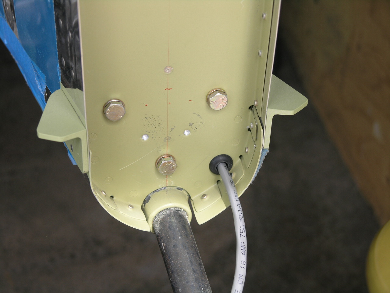 The wiring exits the fuse through a grommet in the VS spar. I cut a slot side to side in the rudder bottom that the wires pass through just wide enough to clear them when the rudder moves to each stop. There is maybe 1/2" of glass between the top of the slot to the opening for the lower rod end cutout. The wires just drop down into the rudder bottom and go aft with enough extra length for a "service loop" to allow the strobe/taillight to be removed to expose the wires for disconnection via an AMP connector on a short pigtail from it.