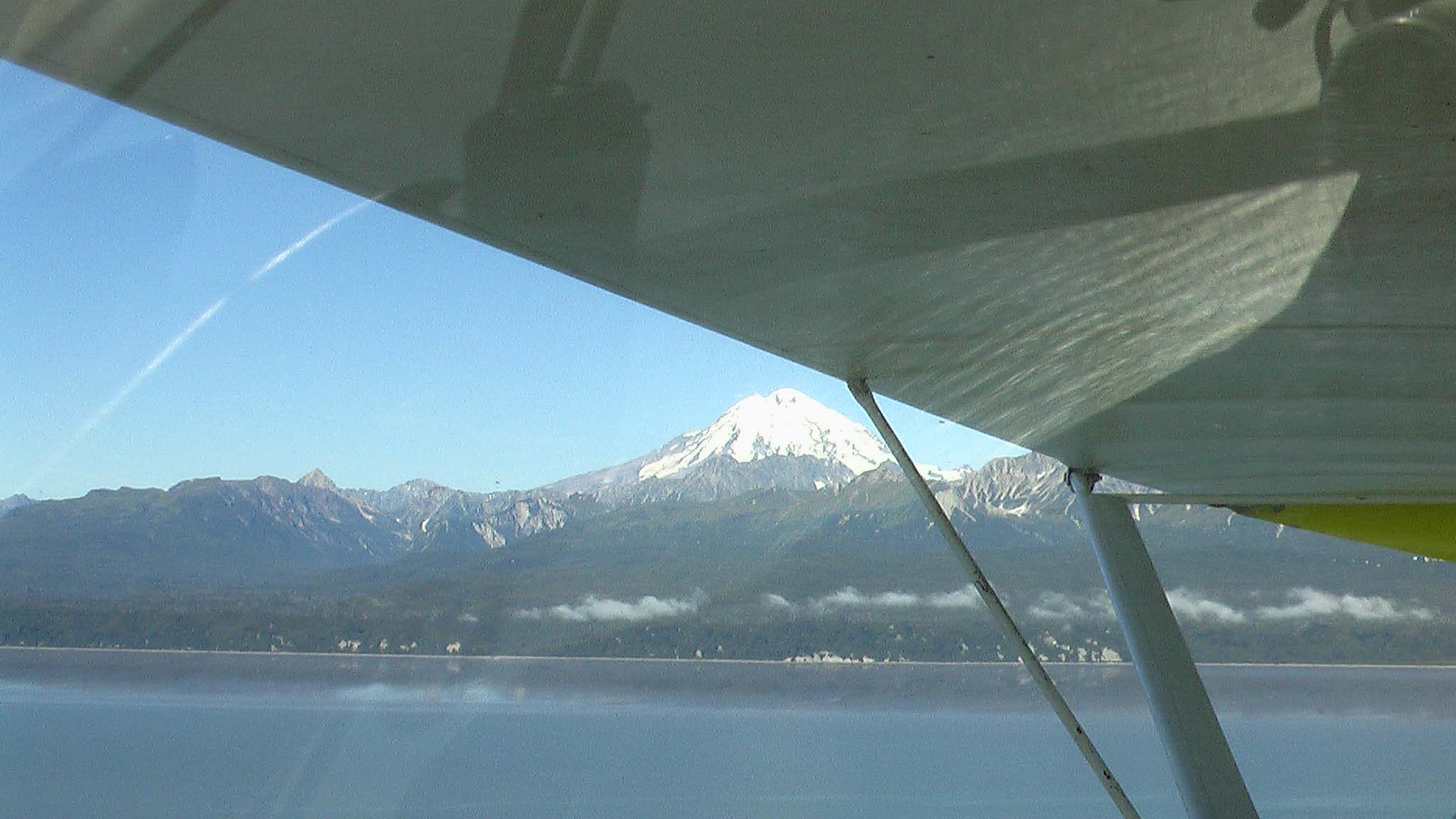 Attached are a few pics of a flight around Cook Inlet and Tuxidney Bay as well as one of us tied up at John Stoners dock. As you can see he has the original skystar rigging and placement. We are trying to talk him into moving the floats so he can get off the water at gross weight.
