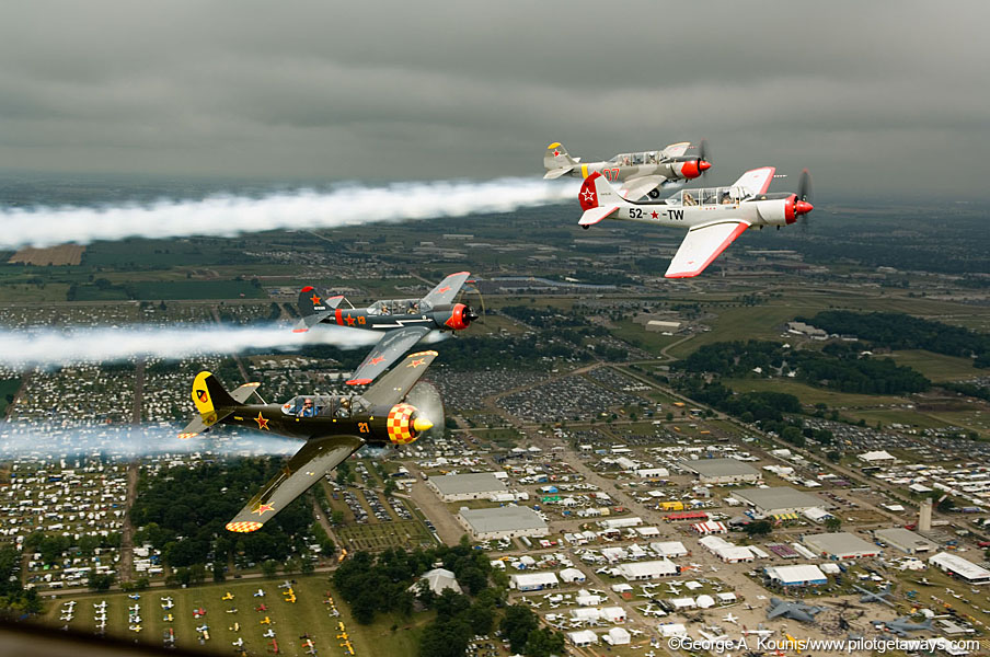 Here are some redstars over OSH this year… ( picture from the inside of a DC-3 )