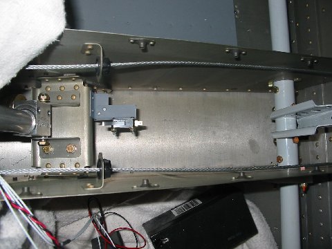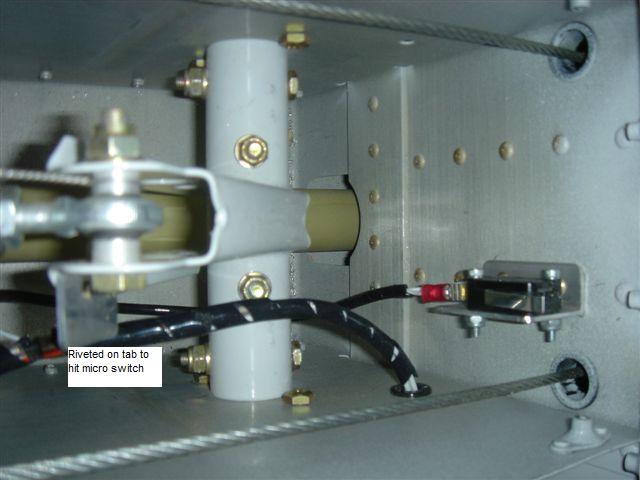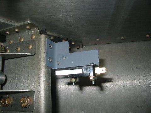 Here is what I did, hopefully you can see it in the picture. I riveted a tab on the end of the flap horn (left side of picture) and it hits the switch on the right side of the picture.