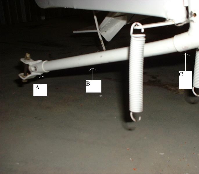 Thanks for the compliments and suggestions. I have attached a picture and labeled the parts on the tailwheel rod A, B, and C, since I don't know what they are officially called.