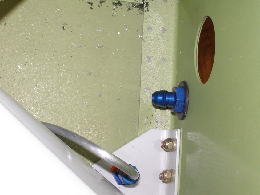 The beauty of just having a fitting at the tunnel and going straight from there to the tank is that you can fit the line more or less, and then remove it until you are ready to install the wing. Then it isn't in the way and in danger of being messed up. That is one of the reasons I don't like the plans version because once you get the line fit and run inside the tunnel, it is almost impossible to remove. The one bulkhead fitting solves this problem.