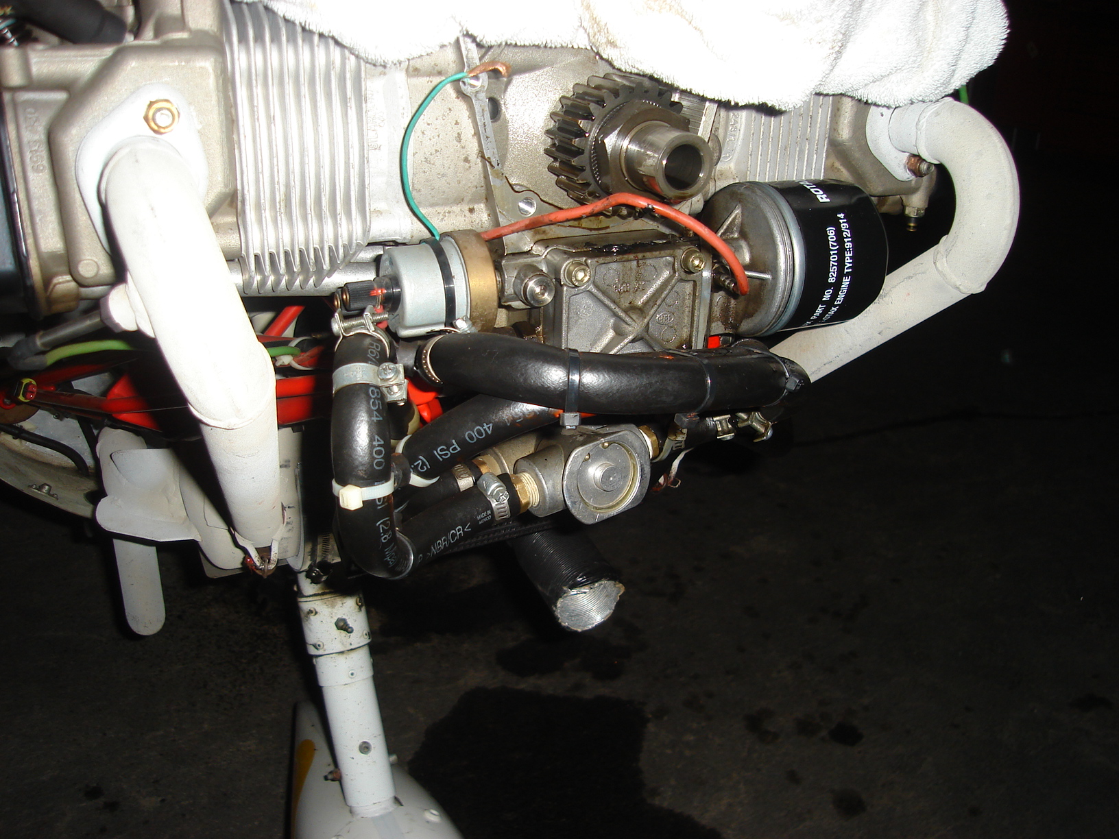 A few days ago, Hugh McKay emailed to remind me that I had not posted photos of the oil thermostat we installed on our Allegro. I apologize for this oversight. After receiving Hugh's gentle reminder, I went to the hangar to take photos of the oil thermostat. Unfortunately, I only got two photos of questionable quality, before my batteries died. I did not even have enough battery juice to see if they came out okay until I got back home.