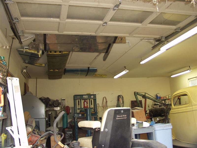 I liked your idea of getting parts UP out of the way, so today I hung my RV-10 tail feathers with strapping material. I just rolled each end about 5 layers and ran a sheetrock screw through it into a ceiling joist.
