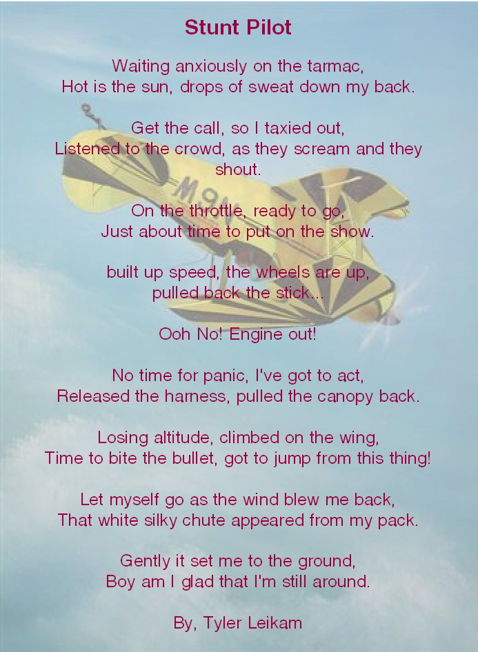 PostPosted: Thu Jan 10, 2008 12:11 pm    Post subject: Stunt Pilot Poem Reply with quote