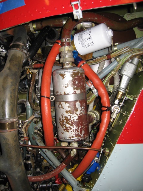 Don't remember right now what the # is but all you need is the adapter and a bracket. It is not the Gorilla but a standard with large fittings. Airwolf sells a kit for the Yak but the hoses and clamps are too large and useless as far as I am concerned adding extra cost, as I remember you need -10 hoses and fittings and Airwolf sent -12 with slip on hoses and clamps. There is only 15 psi on the output. You might well make your own kit up using a different spin on filter plate also. The Champion filter has the correct bypass setting for what you need. I originall set all the information to Airwolf as they requested so it could be passed on. You will need to make your own fittings and the photo's I included show how I went from US back to Metric using the same hoses and brackets. The scavenge line from the engine needs to be angled back slightly to clear the engine mount. In the photo it is hard to see it so before finish welding I suggest a trial fit with the hose assemble complete. If anyone is truly interested I can do a complete How To. It seems every one has there own idea how to do it. I have 140 hours on my install.