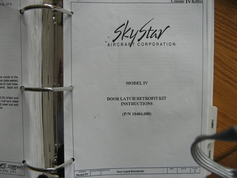 Okay, I,m back with some door latch info. My 1994 Classic 4 manual was delivered with one page of door latch instructions from Denny aerocraft that no way resemble the parts shown.