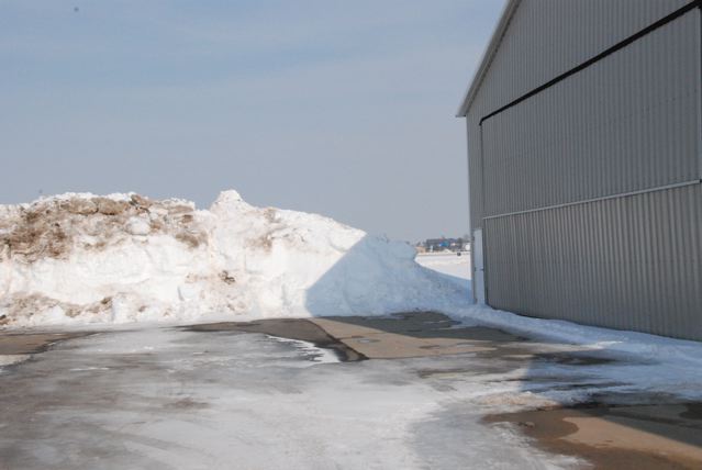 A nice March morning - 35 degrees - Above freezing for the first time this year. Starting to see the pavement in front of the hanger - the pile is about 10 ft high.