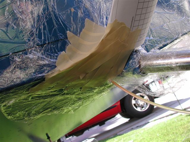 1) protect the background structure from any mess you do. Uncle Craig suggested using plastic food wrap. His suggestion was very appropriate, because the mold material he was using was fabric and plaster of paris. That stuff isn't corrosive or harmful, just mainly messy. If you make a mold out of fiberglass, then you'll need to use something more durable. I suggested aluminum foil. Regardless of the specific product, you don't want to screw up your airplane underneath all the mess.