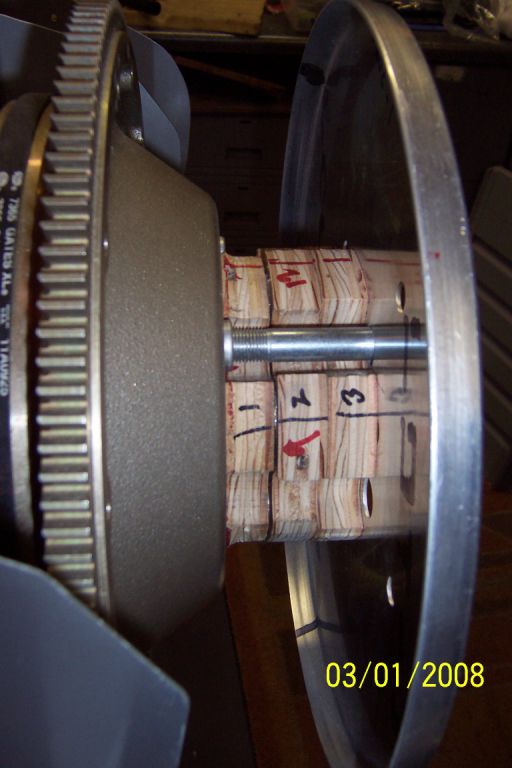 The first picture shows the spinner spacer which was three pieces of good plywood cut accordingly with a couple of nickels for additional space. That gave me a 2.230" spacer. I fitted the cowl which was a little tight at the top and a little wide at the bottom. The faces of the top and bottom cowl are not actually parallel. My plan was to build up the inside back of the top cowl face and the outside of the bottom face and then shave it parallel with the spinner plate to make a perfect 1/4. In the second picture with no prop and spacer, the clearance at the top is a little under 1/4 and maybe 3/8 at the bottom.
