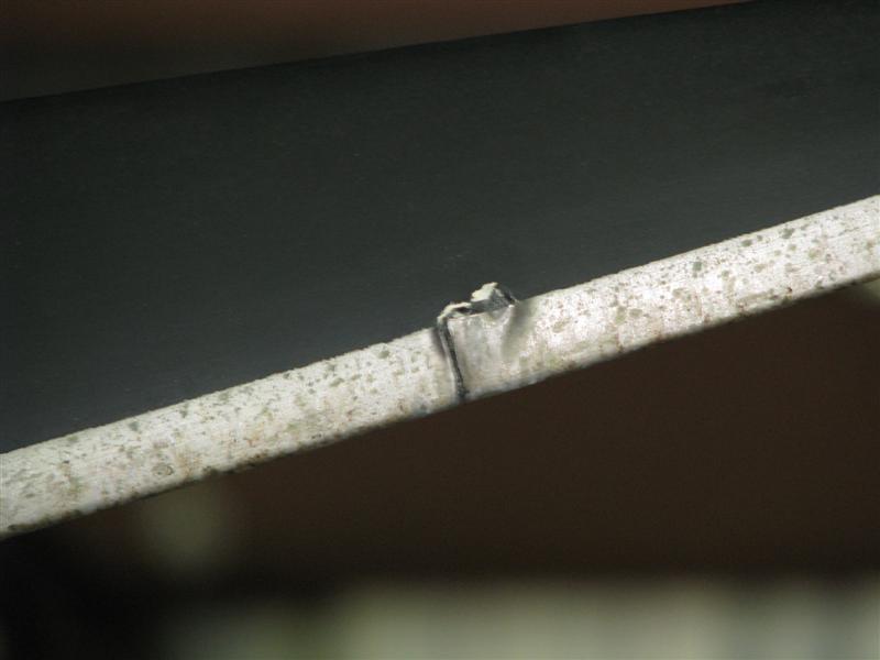 I found it when I pushed the plane back into the hangar. I installed inspection plates in the fabric at key places in the wing. One at the drag strut connection, the spar connection and at the end of the wing for inspection purposes. The inspection plate at the drag strut connection was missing.