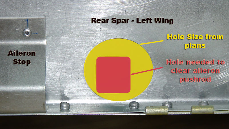 I believe that the hole as specified in the plans is larger than it need be. I would suggest going a smaller and then clecoing the aileron in place and connecting it to the bellcrank with the pushrod. Run the aileron to it's limits and you will see exactly what you need. You can always make it a little larger once you've seen the fit.