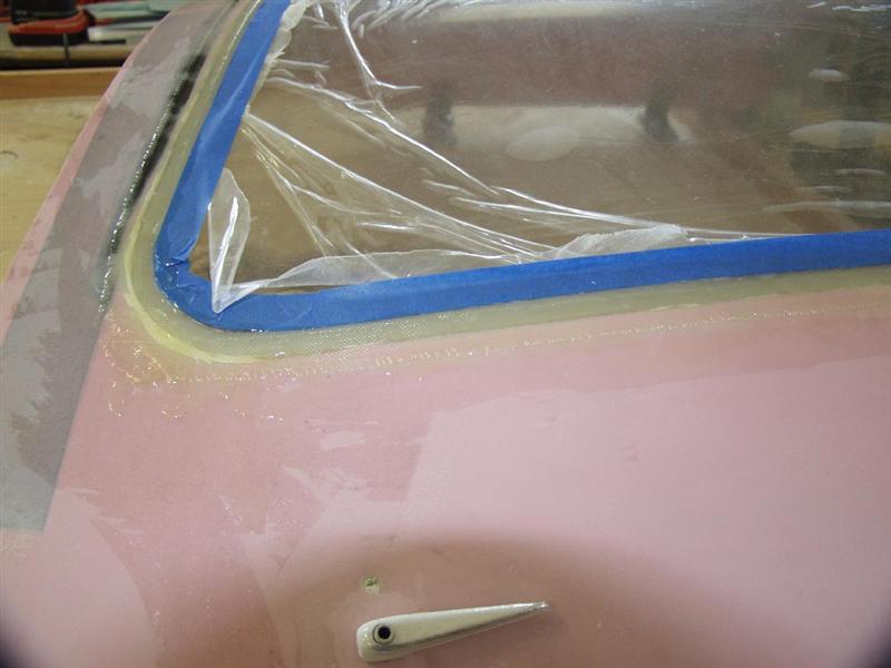 One more observation: Others have commented about the paint peeling off the windshield in rain at 200 MPH. I noticed that where I had ground out the plexi to receive the fiberglass, it bonds perfectly. But if it spilled over onto un-sanded plexi, the fiberglass would easily peel off back to where it was sanded. I imagine the primer and paint will do the same on unsanded plexi, so I have left a small margin so that I can sand the plexi up to where the paint line stops. The Weld-on actually melts into the un-sanded plexi.