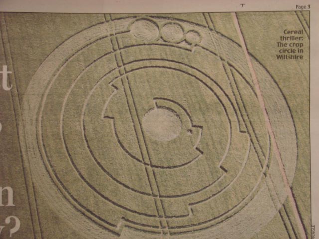 dont know if this is going to work but here is an example of a crop circle in a field locally. Some people think it is the work of aliens(it appeared overnight) but I think it more likely to be the local Young Farmers Union, or the pub darts team.