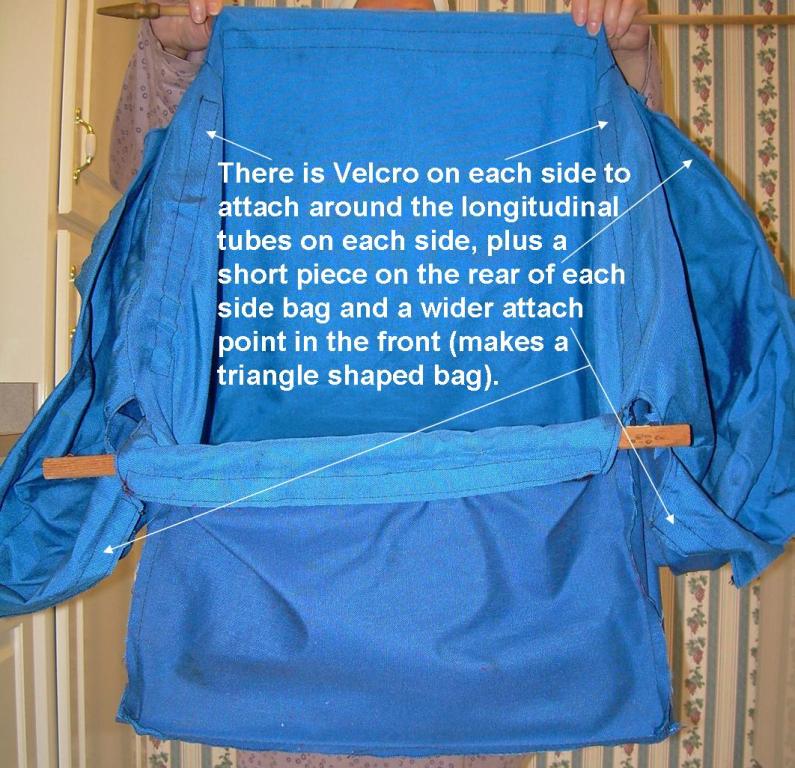 I want to sell the luggage/cargo bag that was originally installed in my Vixen (Series 5). It is blue in color and is in excellent condition. I replaced it with the “large” cargo bag a few months ago. This bag mounts (with Velcro) to the top seat assembly tube and to the next horizontal support member that is about 14’ aft of that. The floor of the bag is larger than the top. It is 18”x18” and is made of 1/8” Masonite. It also has the triangle shaped wings on each side to create the smaller size side pockets. All Velcro is in excellent condition and there are no known defects in the bag.