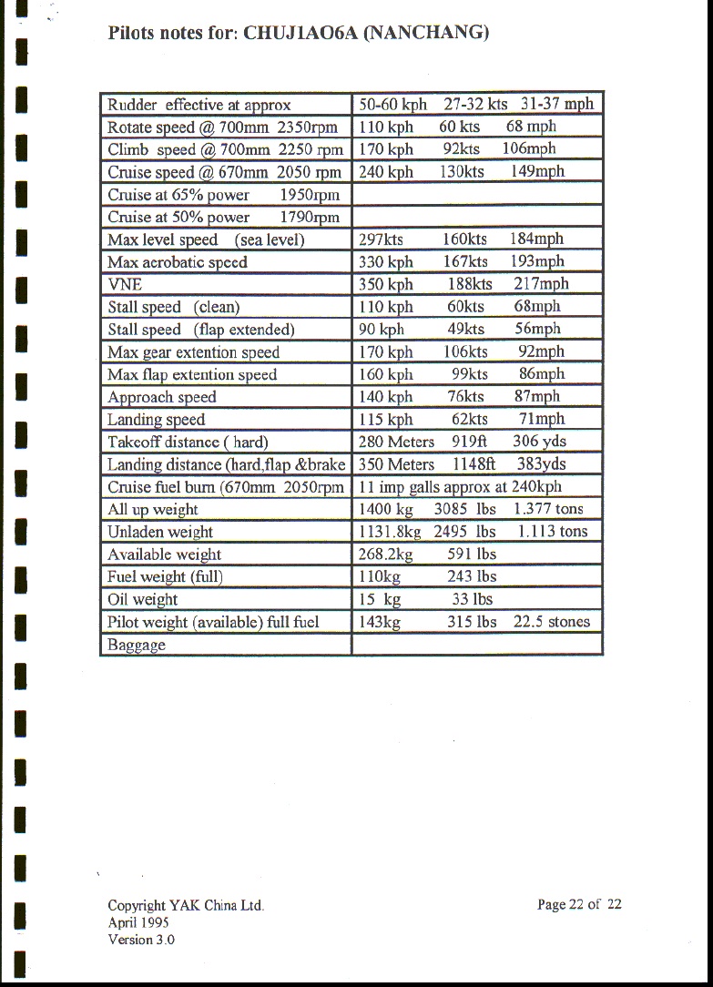 Send me your email and I''ll forward you a document with every V speed you could ever wish for. It's 16 megs so I can't post it on this board