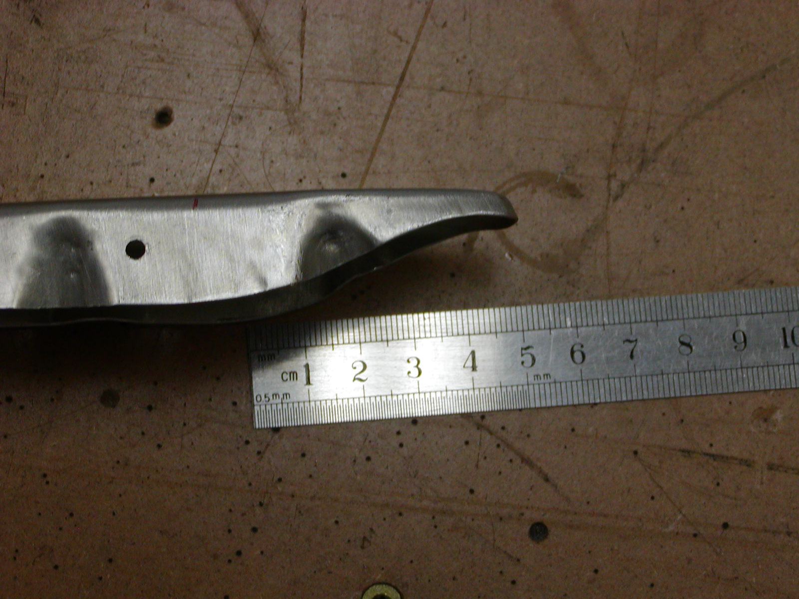 Looks pretty good, the plans are not clear on a number of things like this, while being crystal clear on other things of the same type. Careful of making sharp radii, cracks and the dents made by the fluting pliers. I had way more trouble with the stab tips then the rudder tip and it was due to exactly what you are saying.