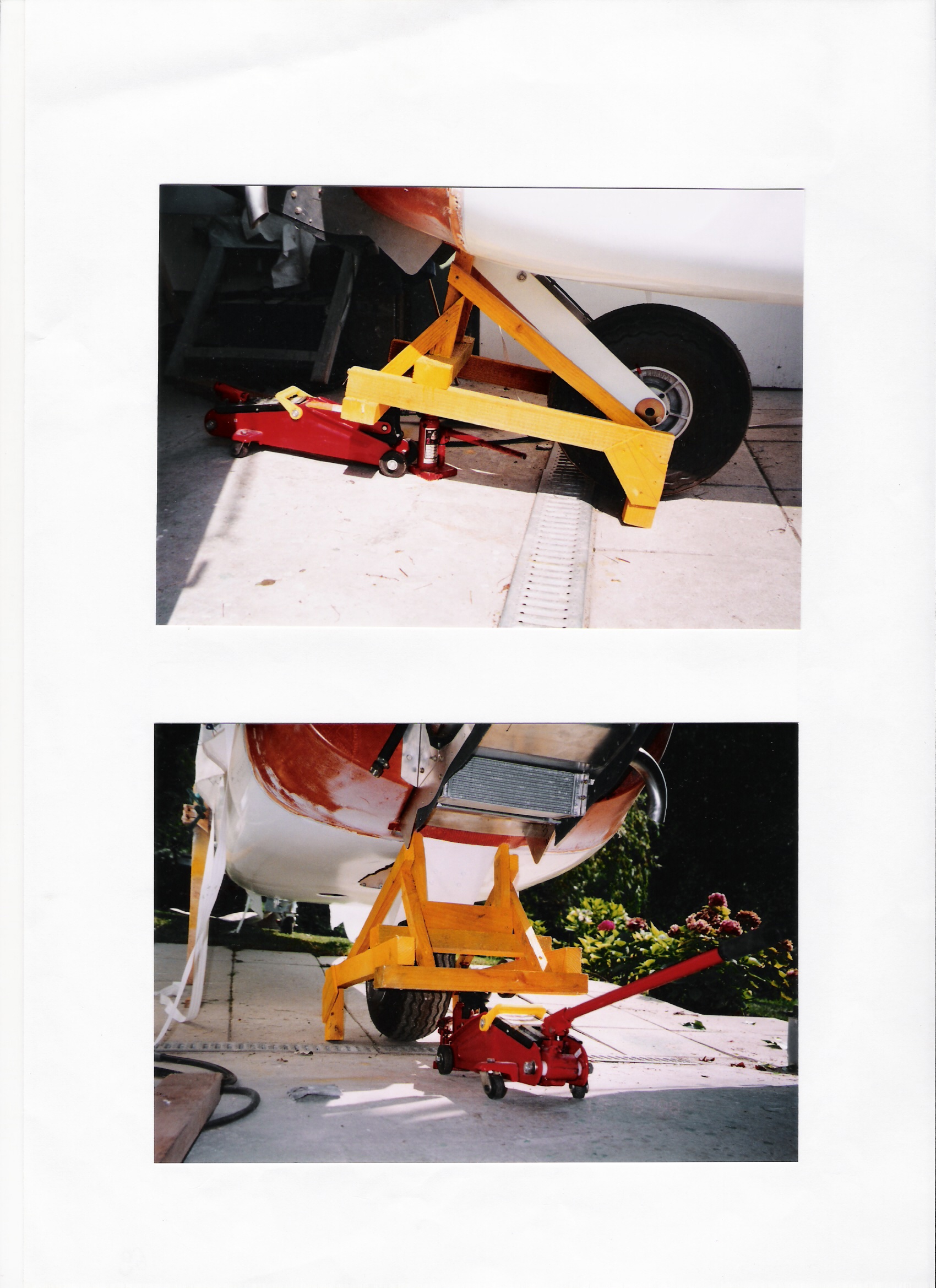Thank you for giving reference to a manual drawing I sent to the Europa Flyer in 1998or 1999. My wooden jack is always working. I think it is the only device using a simple car jack, that is able to lift and to bring up the landing gear of an europa completly rigged with wings or derriged without wings.