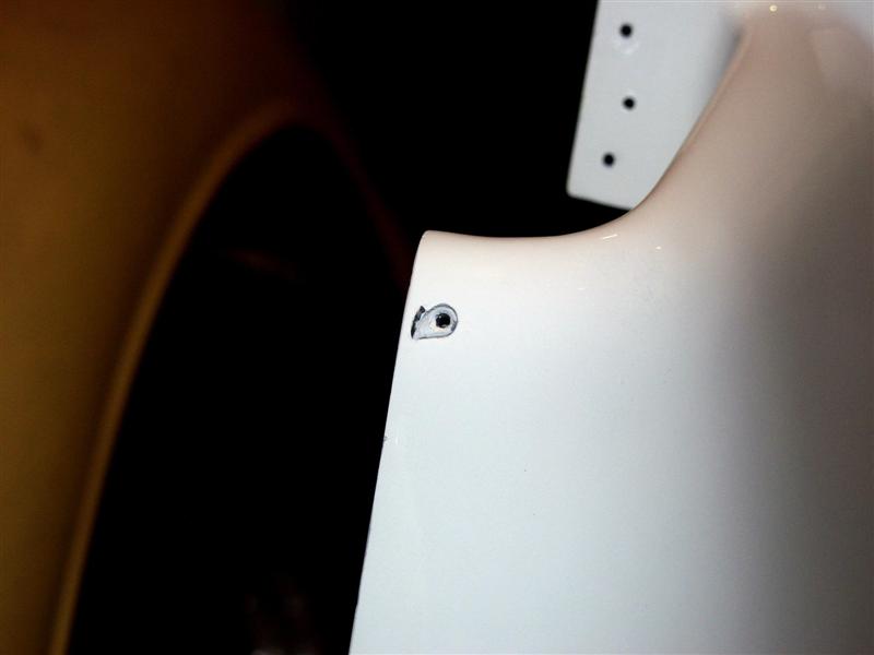 We decided to go simple and quick with the cowl pin on this one, and with the screw head painted, it almost disappears, so we're pleased with it. I just looped the end of the pin around, welded it, counter sunk it, and glassed in the recessed area around the nut plate. One thing I did that others may question (feel free) was to open up the ears on the hinge pin so that I can get the pin in and out more easily. To do this, I took the hinge pin before cutting it to length and flatted a place about two inches back from the tapered end, then put the other end in my drill and fed the pin into the hinges as a reamer. Then I cut off the excess flatted end, re tapered it and cut the pin to size -- it works great now. I got tired of trying to figure out which ears were binding, or trying to sand down the pin itself.