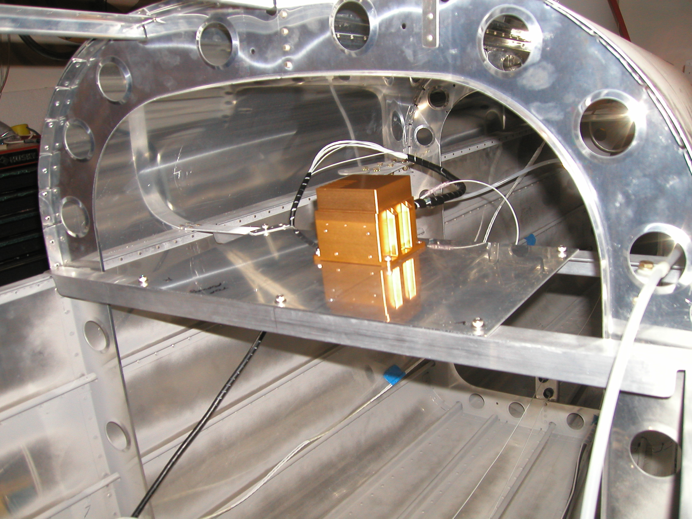 - Magnetometer: Ideally mounted near the wing tip, typically inside the wing, more than 12" from any electrical power leads, motors, or moving mechanisms that include ferrous metal. Its dimensions are 5.125" long (including the mounting flanges), 2.75" wide, 1.125" high. The long dimension is mounted in the direction of flight. A single 9-pin d-sub connector is used for all electrical connections. Weight is 0.25 lbs “