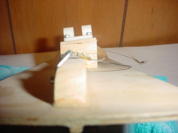 Rear horizontal level view of the left ski with the outside of the pedestal 1/8 plywood sanded down to zero...