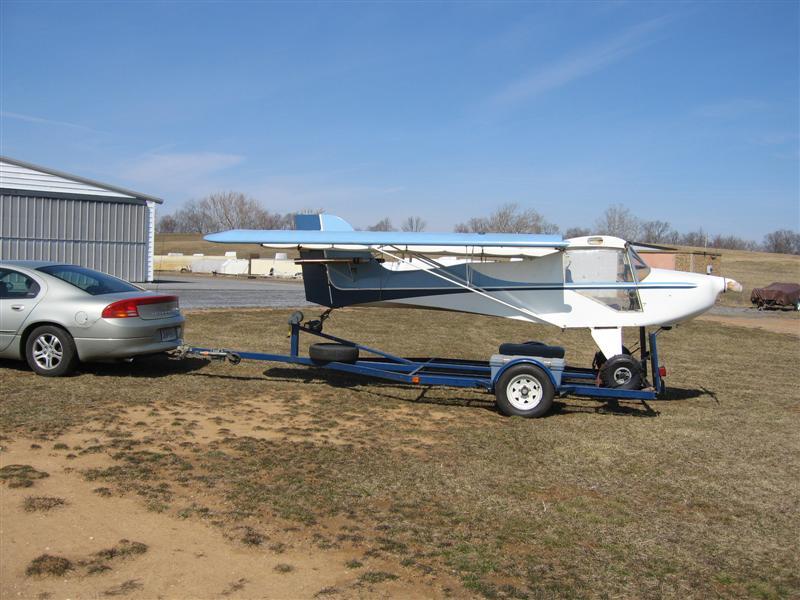 I welded up the trailer in my driveway specifically to fit the Avid -- it is a single axle with minimal spring stiffness --2 leaves. I live on the outskirts of Wash. DC and have to trailer the bird some 50 miles each way to Frederick Muni each time I fly to get out of the ADIZ. The mains are secured with tire chains and the tailwheel is secured with a specially welded up clamp. I have recently added supports for the empennage which fasten iinto the cross tubes for towing on its own wheels which takes all of the weight off of the tail spring. I will attach a couple of photos, but the trailer details can best be seen posted on the Avid Flyer list under Pops' Avid A.