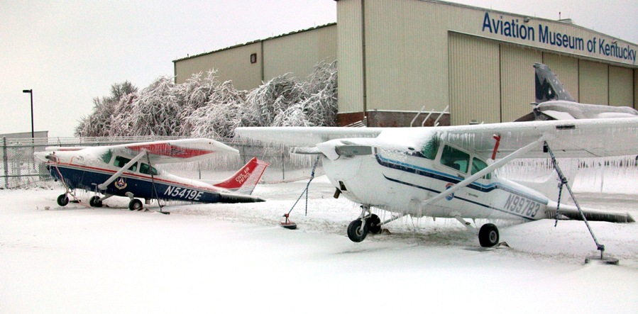 We had some serious Ice and snow over the last few days. I got out to the airport and was really glad I was in a hanger!All aircraft had become tail draggers! Hope none are damaged!Jim CombsN312F - FlyingDo Not Archive