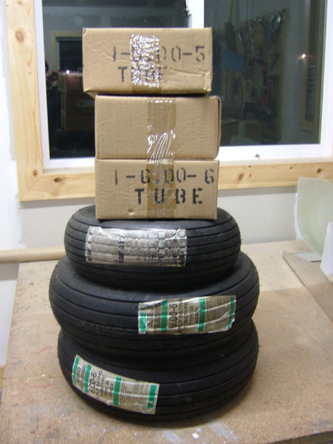 I have a set of new tires and tubes. They are 6-ply McCreary's (2) 6.00-6 and (1) 5.00-5 (mains and nose) for sale. Aircraft Spruce lists them for $249.85, first $200.00 takes them. Shipping on the tires will be $20 to any of the lower 48 states.