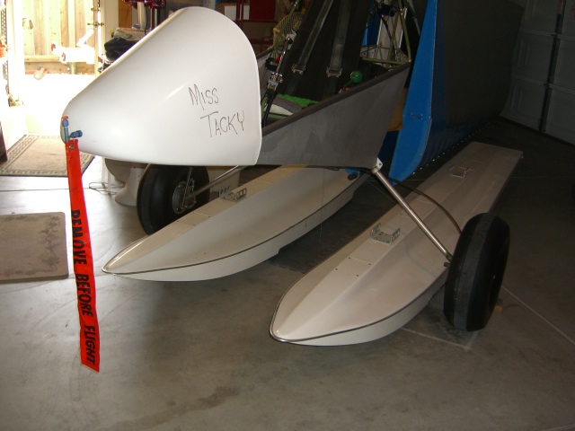 The floats are new, but I think the rigging is for a two-place Quicksilver, so it's all "by gosh, by golly" at this stage of the game...
