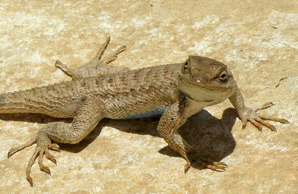 | Here's the welcoming committee. Don't know the brand, so we called it a "Blue Bellied Rock Scratcher." |